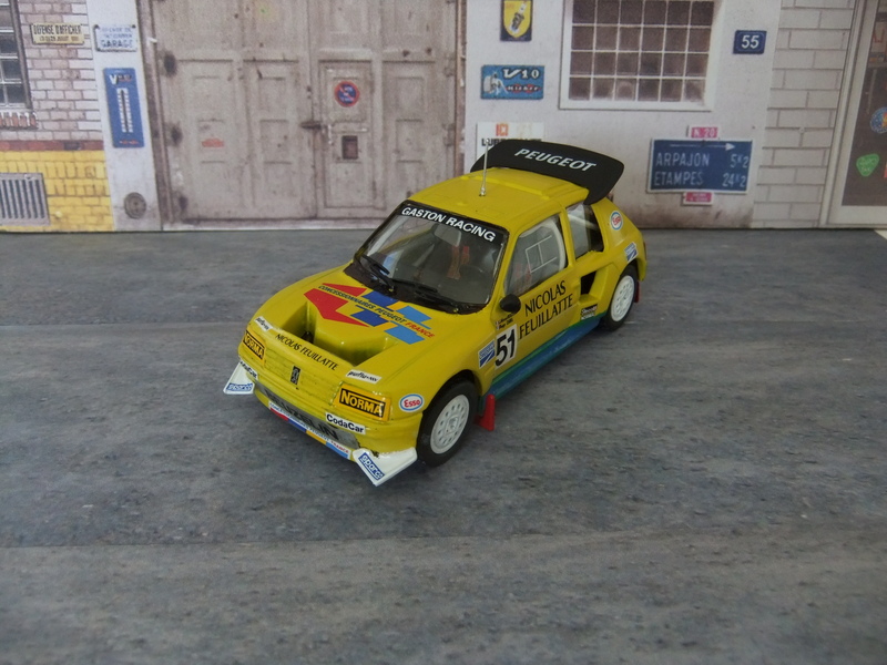 Origine kit pour une 505 gendarmerie, je n'ai gardé que la coque. Pour le châssis rehaussé j'ai pris une 504 break Dangel que j'ai coupé pour l'ajuster sur la coque, récup de barre de toit d'une Mercedes, feux arrière de toit : repose tète d'une baquette AR, bavettes ...