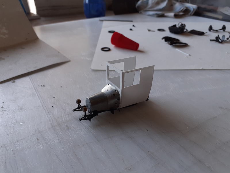 J'en profite pour finir les ouvertures latérales. Cet épisode donne l'impression que je n'ai rien fait de plus, là je viens de fabriquer le plancher et d'y incérer la partie filetée qui me permettra de fixer la voiture sur son socle. Cela me permet de faire un montage à blanc. Les perçages pour support du pare chocs Je viens de faire les premières modification sur l'intérieur en diminuant la hauteur des panneaux de porte.L'intérieur sera repris plusieurs fois lui aussi. Mine de rien (et cela ne se voit pas), j'ai reproduit tous les arrondis sur le bas des portes, arrière, et baie.