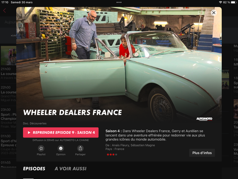 Pour ceux qui peuvent avoir la chaîne auto moto whealers dealers,vous pourrez assister à la restauration d’une magnifique 203 bicolore.