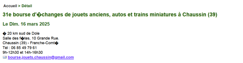 Pour tous les Campeurs de Bourgogne Franche Comté et ceux qui seraient de passage la 31éme Bourse aux jouets anciens de Chaussin aura lieu le 16 mars 2025