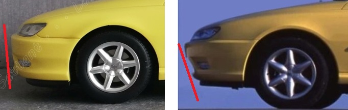Le pare-chocs avant n'est pas du tout correct, trop massif sous la calandre