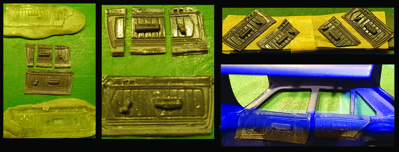 Parti d’une 104 Minialuxe, j’ai commencé par l’habitacle en découpant la parti avant pour y remplacer les siège, moulage de l’intérieur d’une 104 ZS Norev puis le coulage, mise à dimension et assemblage des sièges et de la banquette. Moulage et coulage des panneaux de portes, découpe et transformation en quatre panneaux 2 avant et 2 arrière.
