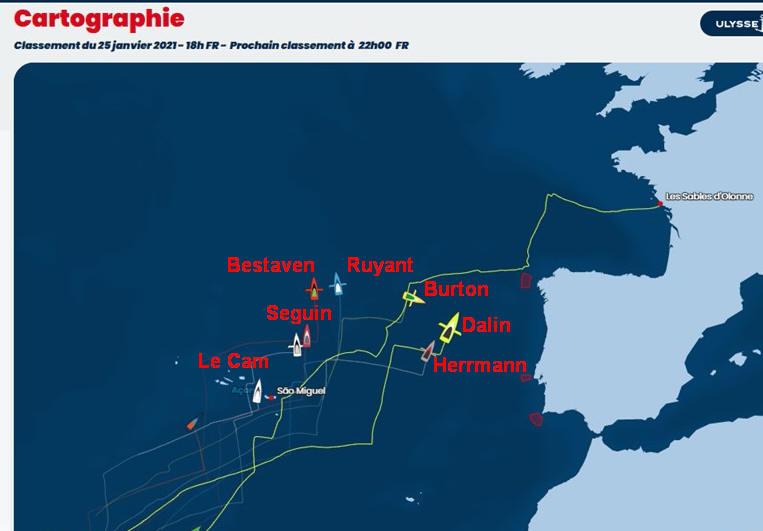 Yannick Bestaven fait partie du groupe des 6 ou 7 skippers concernés… Classement provisoire à 18h00 HF :